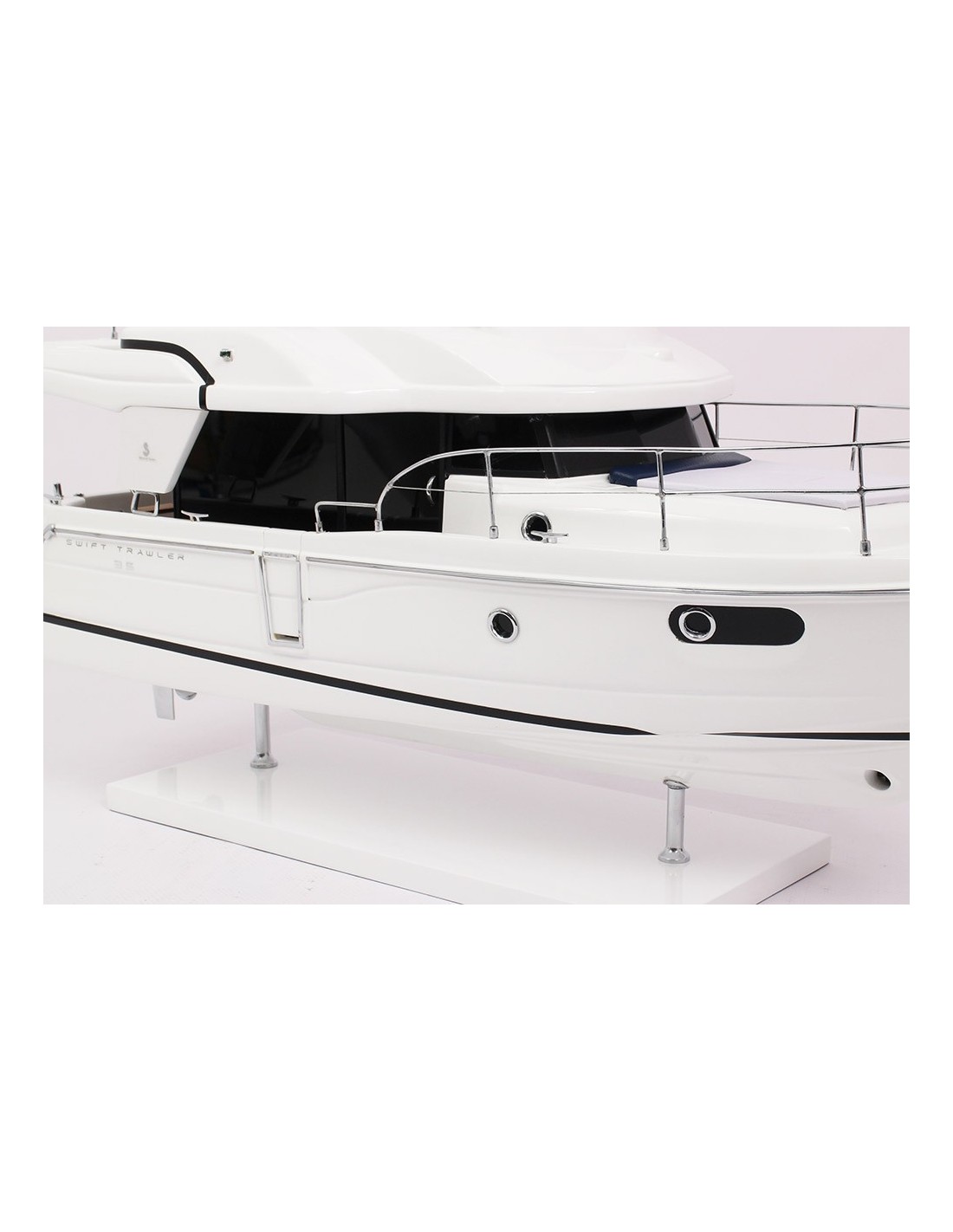 Faithful replica of the Beneteau SWIFT TRAWLER 35. This official model, scale 1:20, is made in partnership with BENETEAU Shipyard from the original plans.