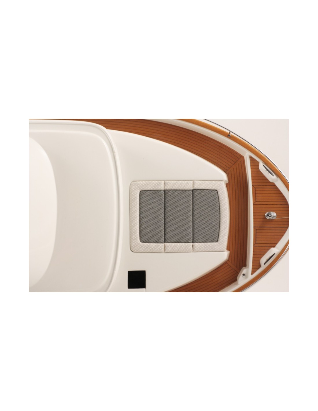 Deck fitting parts in chromed brass, custom made, slatted wooden deck. 4 layers of paint and 2 coats of varnish are applied to obtain a ” gel coat” quality.