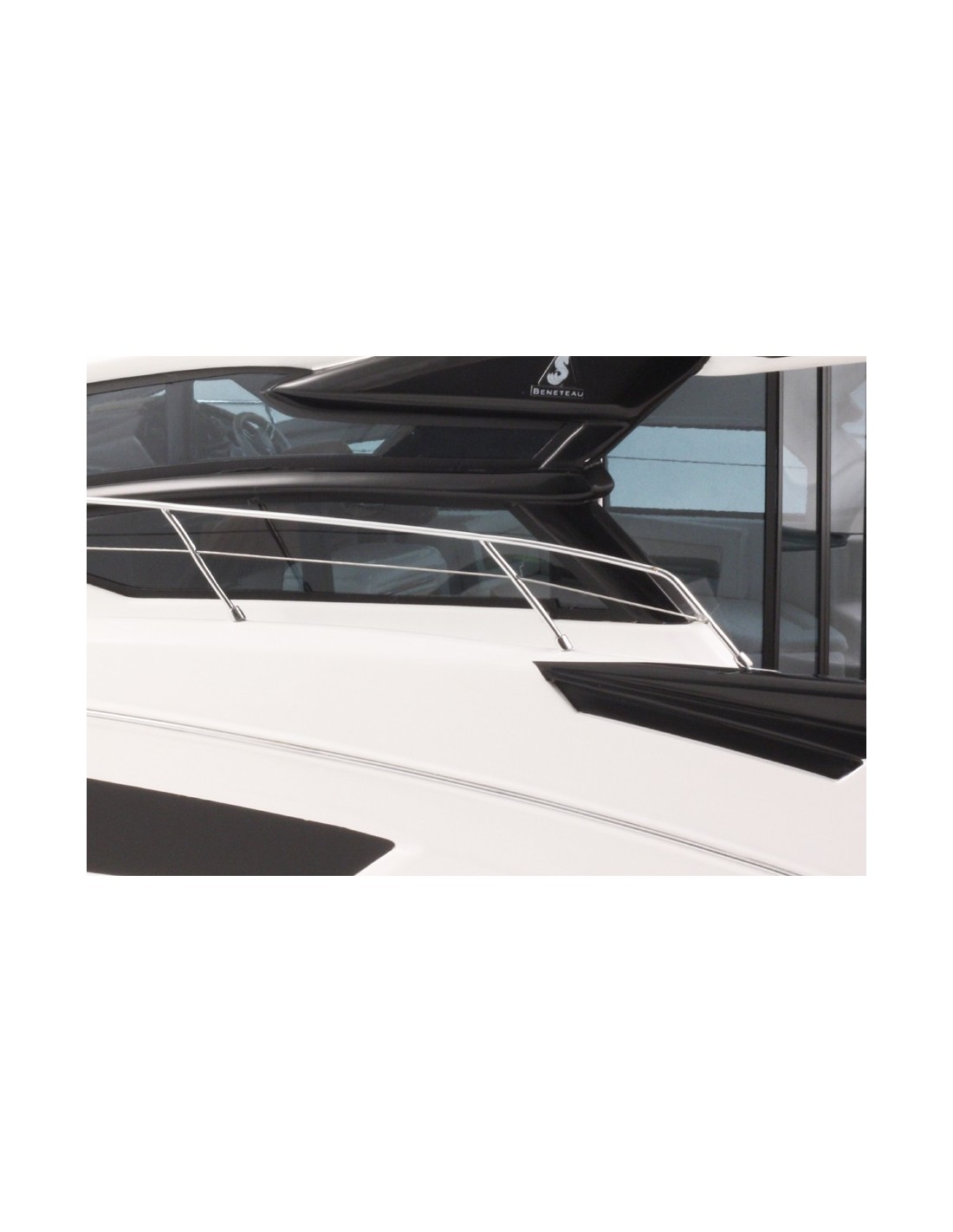 Accastillage en laiton chromé, réalisé sur mesure, sellerie marine d’origine. 4 couches de peinture et 2 couches de vernis de finition sont appliquées pour un rendu "Gel Coat".